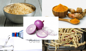 ଅବଶ୍ୟକୀୟ ସାମଗ୍ରୀ – ଅଦା, ହଳଦୀ, ପିଆଜ,ତୁଳସୀ ପତ୍ର ଏବଂ ଲୁଣ। ଗୋଟିଏ ଆଦାକୁ ଆଣନ୍ତୁ ଏହାର ଚୋପା ସହିତ ଭଲ ଭାବେ ଧୋଇ ଏହାକୁ ଛେଚି ଦିଅନ୍ତୁ।ଏହାର ରସ କୁ ଏକ ପାତ୍ରରେ ରଖି ଦିଅନ୍ତୁ। ପିଆଜ କୁ ଛେଚି ଏହାର ରସକୁ ମଧ୍ୟ ସଂଗ୍ରହ କରି ନିଅନ୍ତୁ। ତୁଳସୀ ରସ କୁ ମଧ୍ୟ ଅଳ୍ପ ପାଣି ମିଶାଇ ସଂଗ୍ରହ କରି ନିଅନ୍ତୁ ଏଥିରେ ଅଳ୍ପ ଲୁଣ ପକାଇ ଦିଅନ୍ତୁ। ସବୁଥିରୁ ପ୍ରାୟ ଦୁଇ ଚାମଚ ରସ କୁ ମିଶାଇ ଭଲ ଭାବେ ଗୋଳେଇ ସମ ମିଶ୍ରଣ କରନ୍ତୁ ବର୍ତ୍ତମାନ ଏହାକୁ ହାଲୁକା ଉଷୁମ ପାଣି ରେ ମିଶାନ୍ତୁ ଏକ କପ ପାଣିରେ ଏହାକୁ ମିଶାନ୍ତୁ।